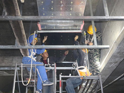 風管保溫采用保溫釘焊接保溫工藝,空調焊釘是由優(yōu)質鍍鋅板加低碳鋼絲鉚制而成的,底盤直徑在30mm左右,絲經(jīng)在1.8mm。長度根據(jù)巖棉板厚度不同而定。使用方法:首先將巖棉平鋪在通風管道上,然后用焊釘搶將焊釘?shù)妆P吸入,將釘尖端插入巖棉,直接焊接在管道鐵皮上。